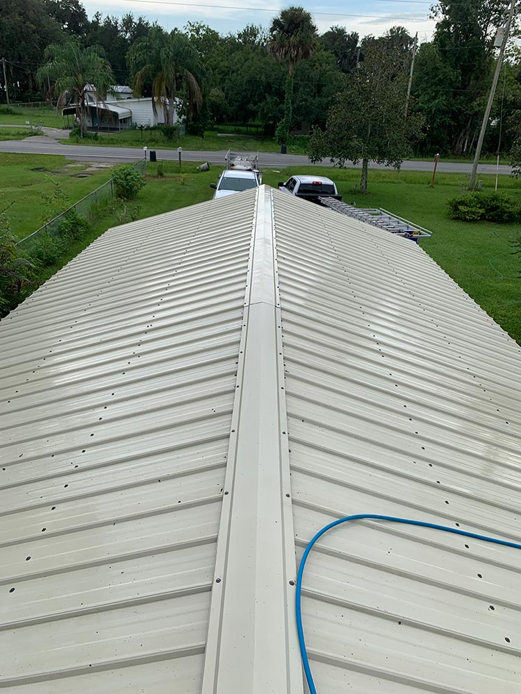 Soft Wash Roof Cleaning on a metal roof in San Mateo, FL. This roof was covered in mold, mildew, organics which makes them very unsightly and also slippery and dangerous to walk on. While cleaning the roof we also treated the chimney and made it look […]