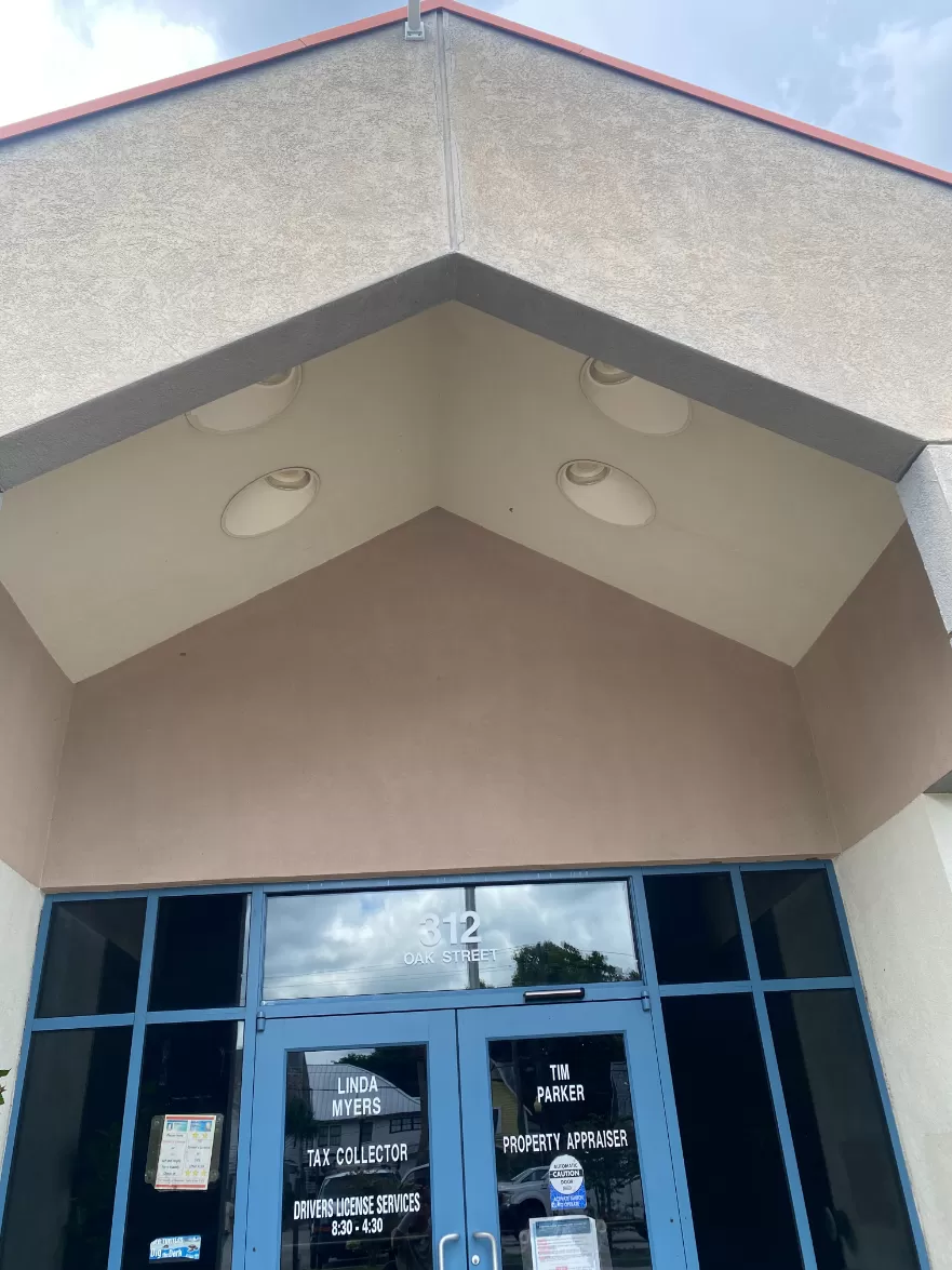 Soft washing our local courthouse annex in downtown Palatka, FL. These buildings were covered with insect infestation, sidewalks were disgusting with mold, mildew, and dead insects.